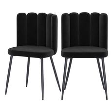 Lot de 2 chaises en velours noir et pieds en métal noir - Rosy