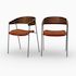 Leur piètement en bois courbé et leur placage noyer dessinent une silhouette fluide et légère.