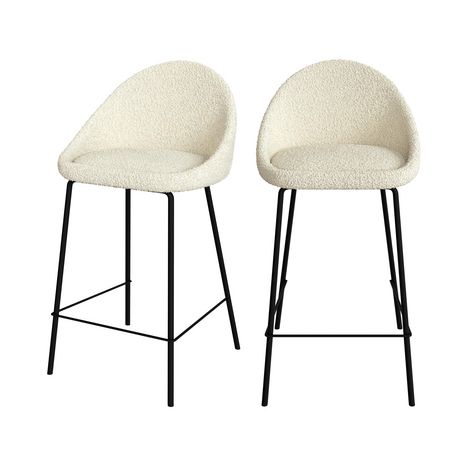Lot de 2 chaises pour îlot central 65 cm en tissu bouclette blanc - Misty
