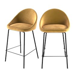 Lot de 2 chaises pour îlot central 65 cm en velours jaune - Misty