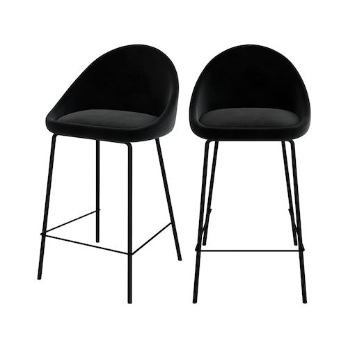 Chaise de bar mi-hauteur Misty en velours 65 cm (lot de 2) -
