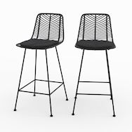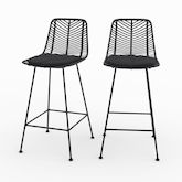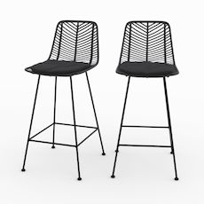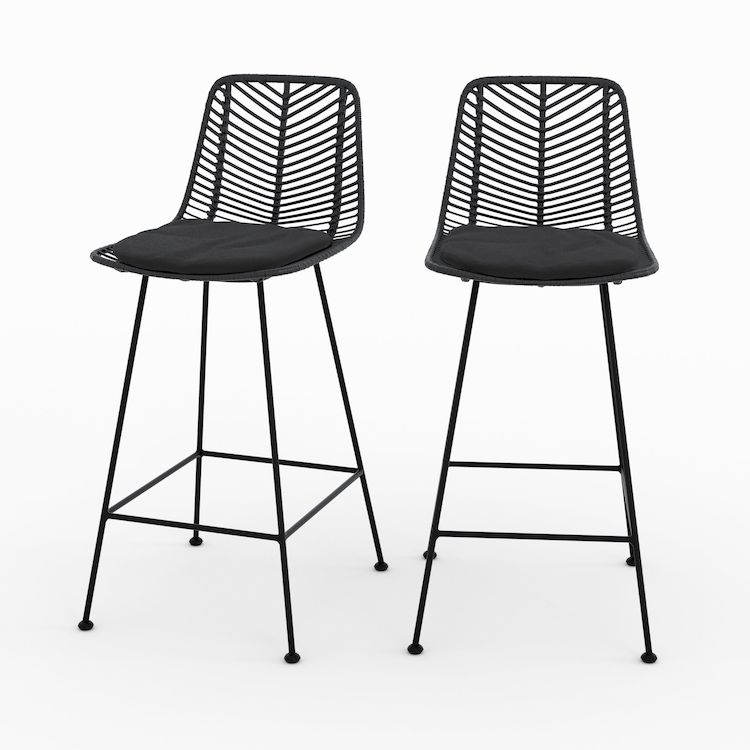 Lot de 2 chaises pour îlot central 66 cm en rotin noir-Tamara