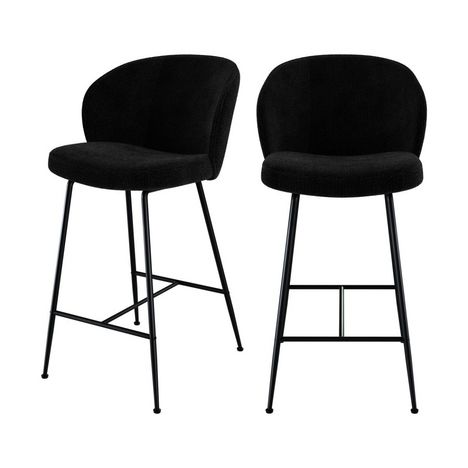 Notre lot de 2 chaises de bar Groom offre un confort et un style graphiste. À une hauteur de 66 cm, ces chaises sont spécialement conçues pour apporter une touche élégante à votre îlot dans votre salon, salle à manger ou même cuisine. Avec leur tissu bouclé qui évoque à la fois la douceur et l'élégance, associé à des pieds en métal au design distinctif, ces chaises incarnent le parfait équilibre entre forme et fonction.