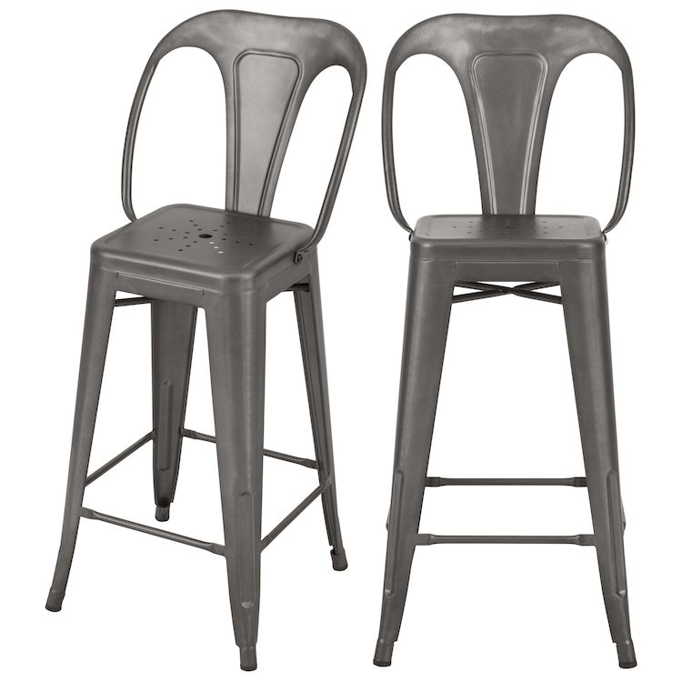 Lot de 2 chaises pour îlot central 67 cm en métal gris anthracite-Indus