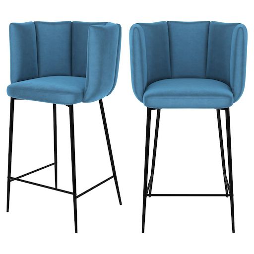 Lot de 2 chaises pour îlot central 67 cm en velours bleu - Rosy