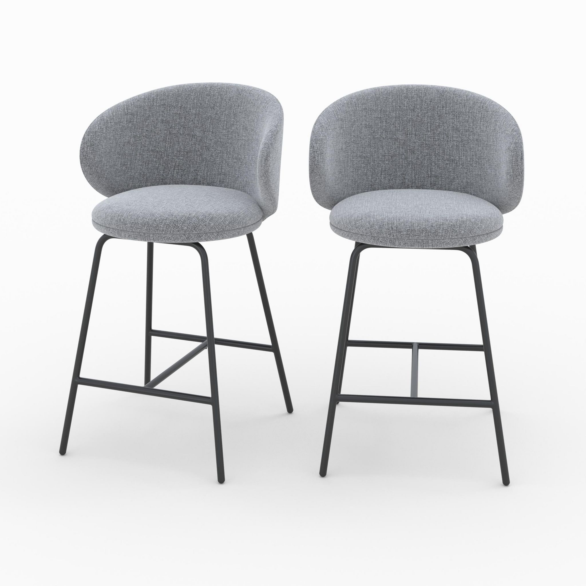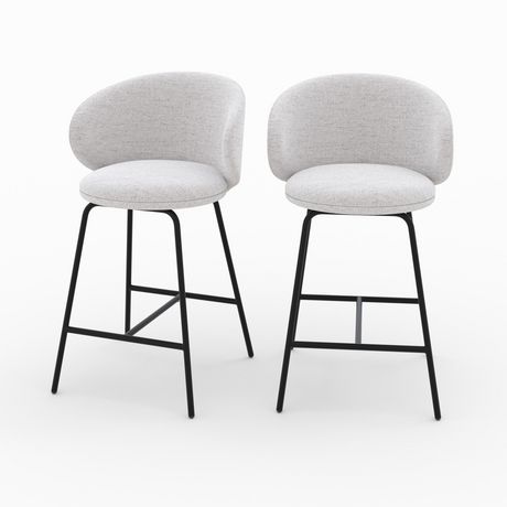 Chaise pour îlot central Cécilia en tissu 68 cm (lot de 2) - Le charme intemporel du tissu chiné des chaises pour îlot central Cécilia (lot de 2) s'intègre parfaitement dans une cuisine moderne.Le dossier enveloppant et les repose-pieds intégrés assurent un confort exceptionnel, idéal pour de longs