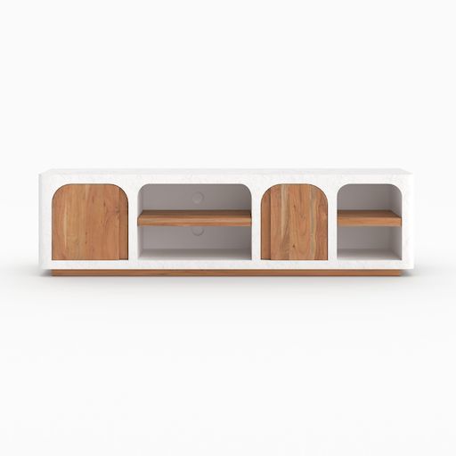 Pensé pour allier esthétique et praticité, ce meuble TV en plâtre façonné à la main révèle un savoir-faire artisanal unique venu du nord de l&rsquo,Inde. Son placard en bois intégré permet de dissimuler câbles et objets pour un rendu épuré au quotidien.