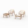 Conçu en bois d&rsquo,acacia huilé, le salon Palawan allie robustesse et élégance naturelle. Ses deux fauteuils rembourrés, dotés d&rsquo,accoudoirs confortables, invitent à la détente, complétés par un repose-pied et une table basse carrée pour savourer chaque instant en extérieur.