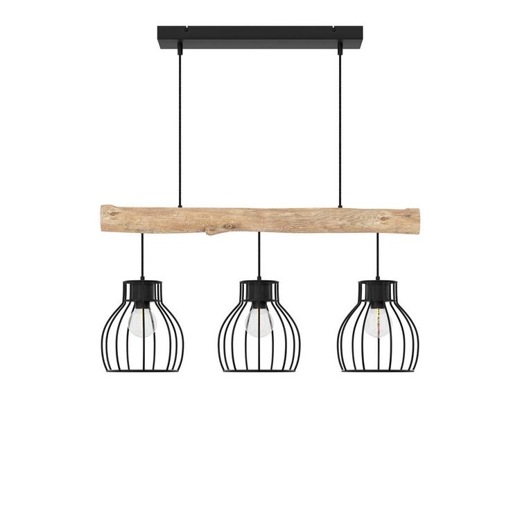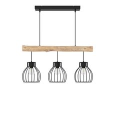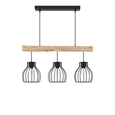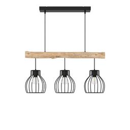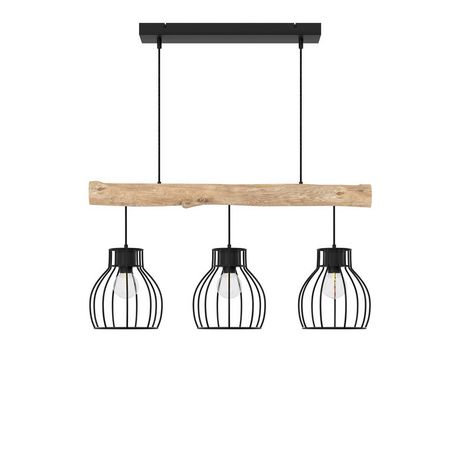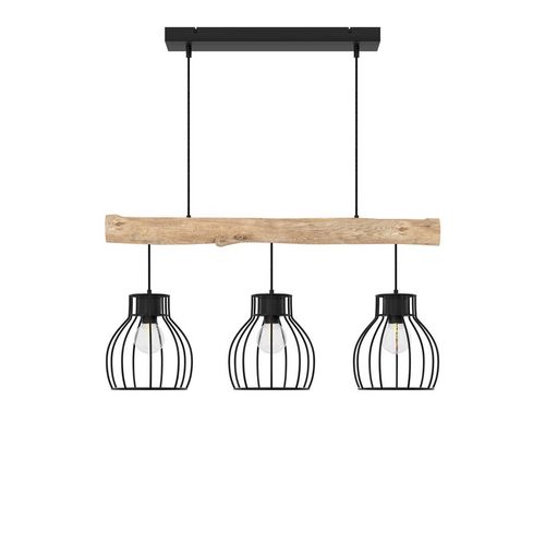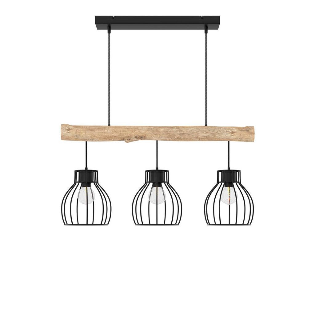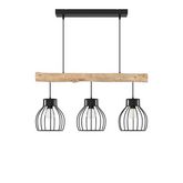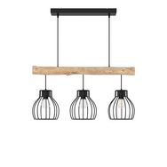 Suspension 3 lampes en bois d'eucalyptus et métal noir-Abby