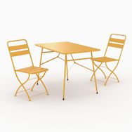 Table et chaises de jardin pliantes 4 personnes en métal jaune-Yumi