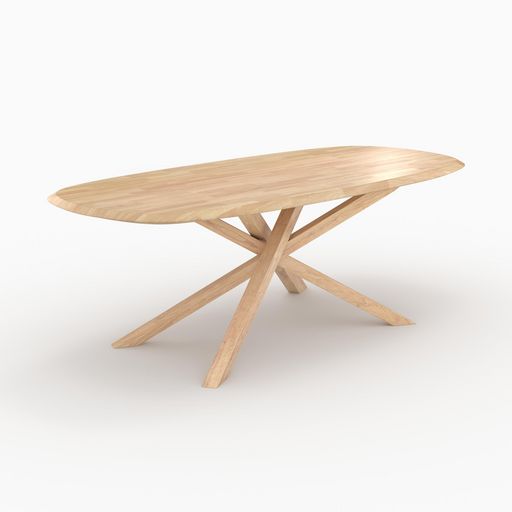 Table Aladin rectangulaire en bois d'hévéa massif - Le charme du d'hévéa massif se révèle dans la table Aladin, alliant robustesse et élégance.Son plateau arrondi assure douceur et sécurité, idéal pour les familles. Le piètement en croix garantit stabilité tout en libérant de l'espace pour les jambe