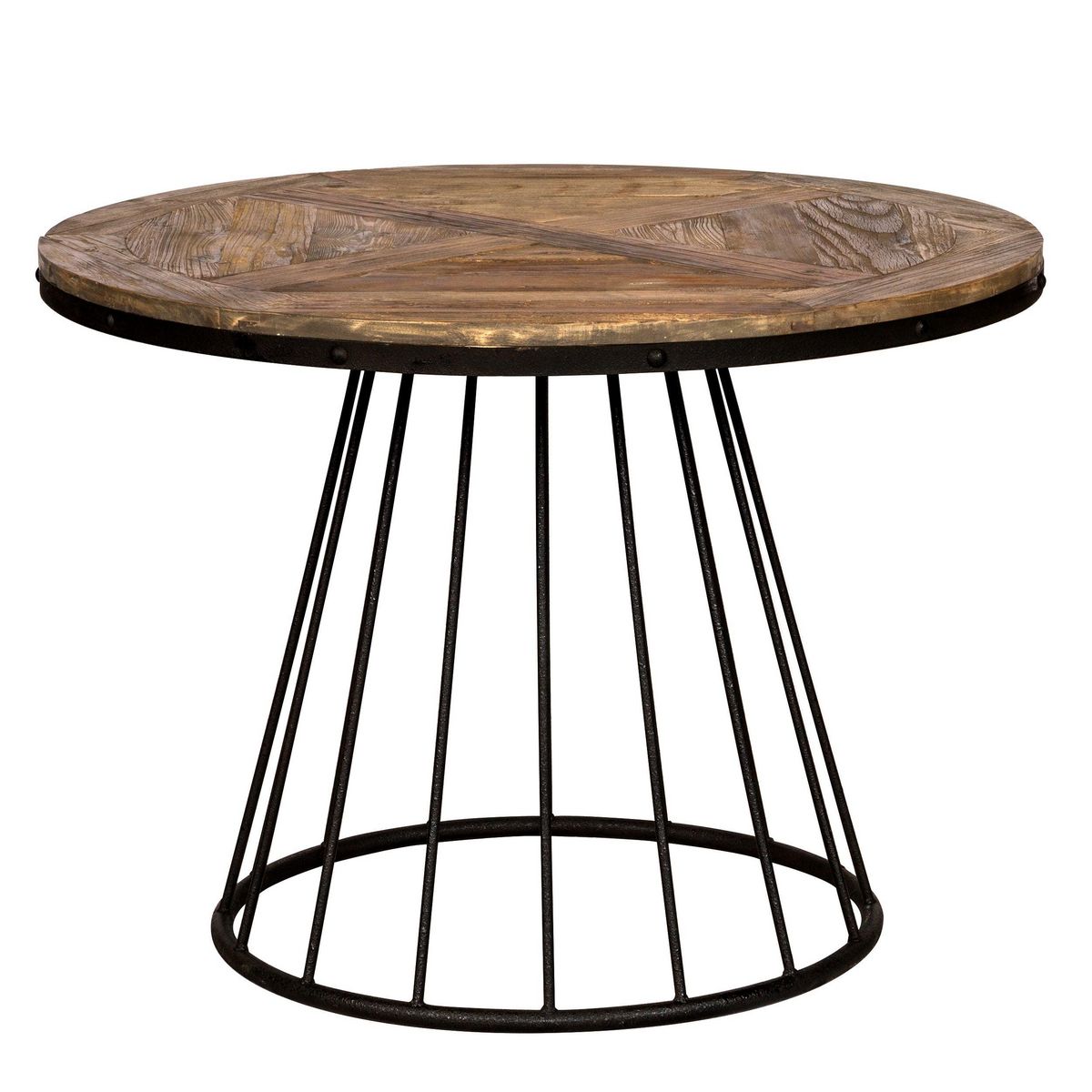 Table ronde 5 personnes en bois de cèdre et pied en métal D110 cm-Pralus