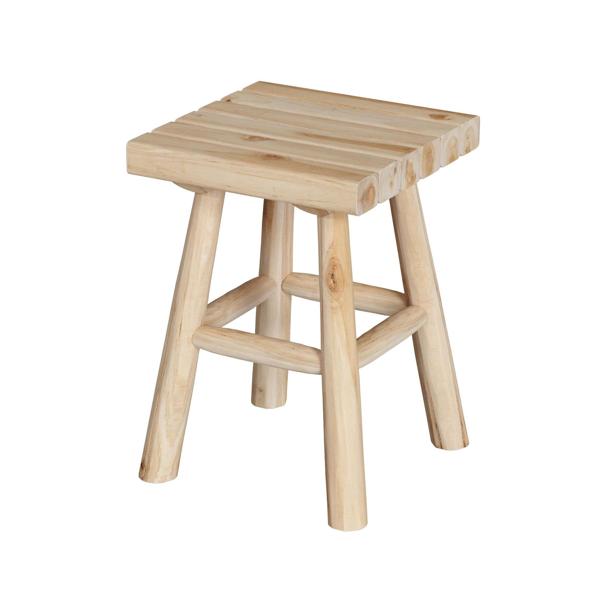 Tabouret de jardin carré en bois de teck brut H40 cm-Makam