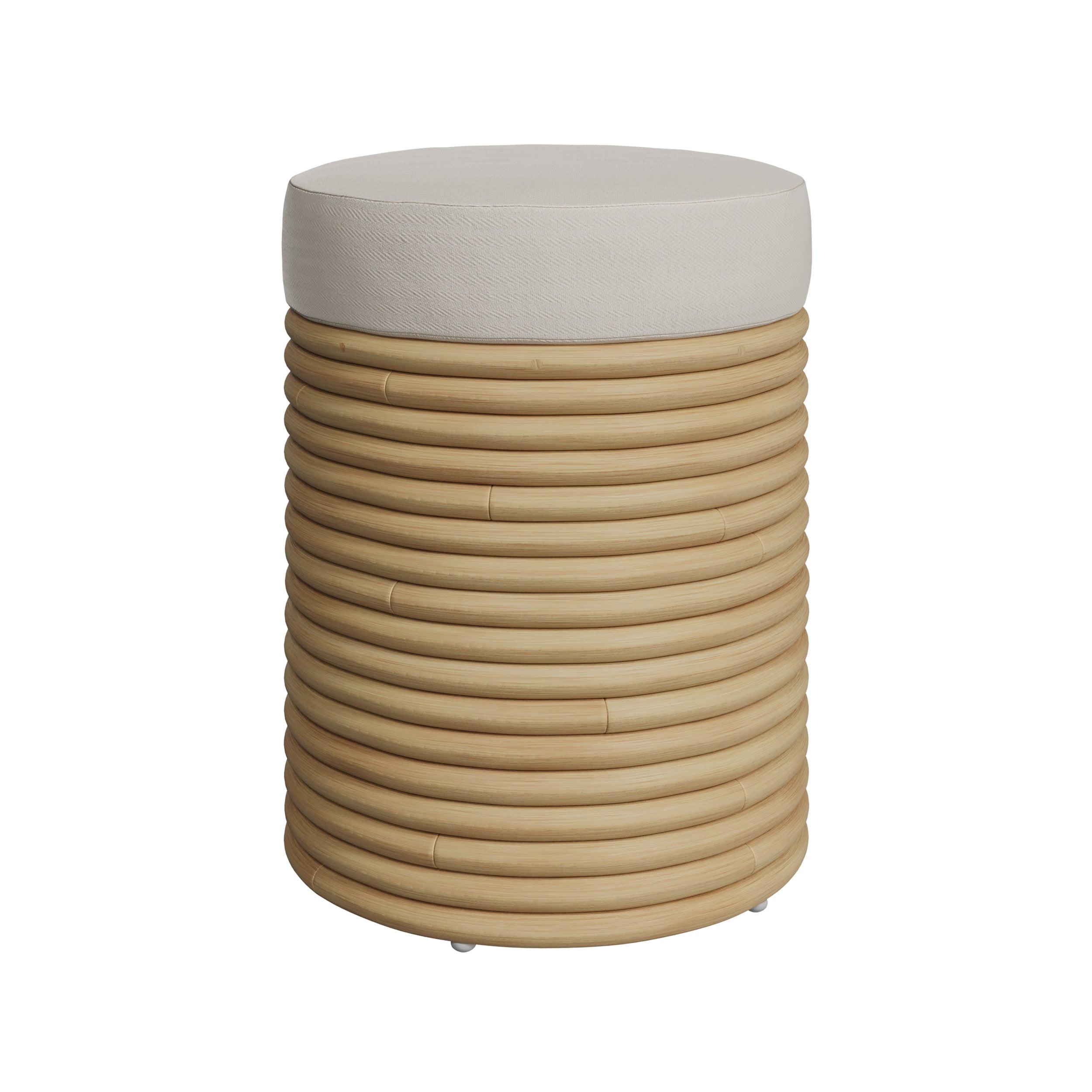 Tabouret Théa en rotin et tissu crème H 43 cm -