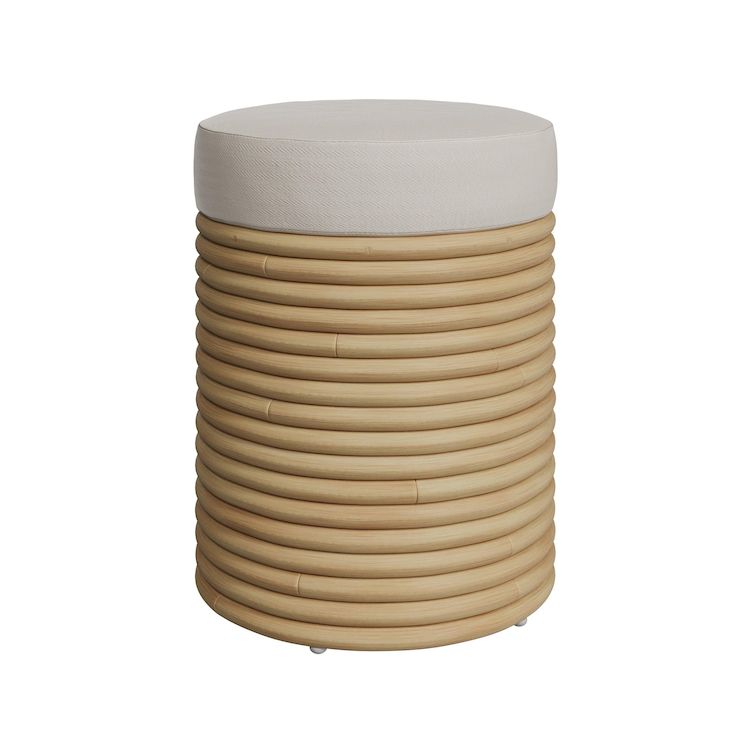 Tabouret en rotin et tissu crème H 43 cm-Théa