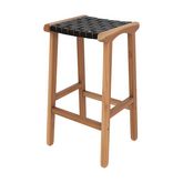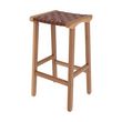 Tabouret pour îlot central 68 cm en teck et cuir tressé marron - Kuna