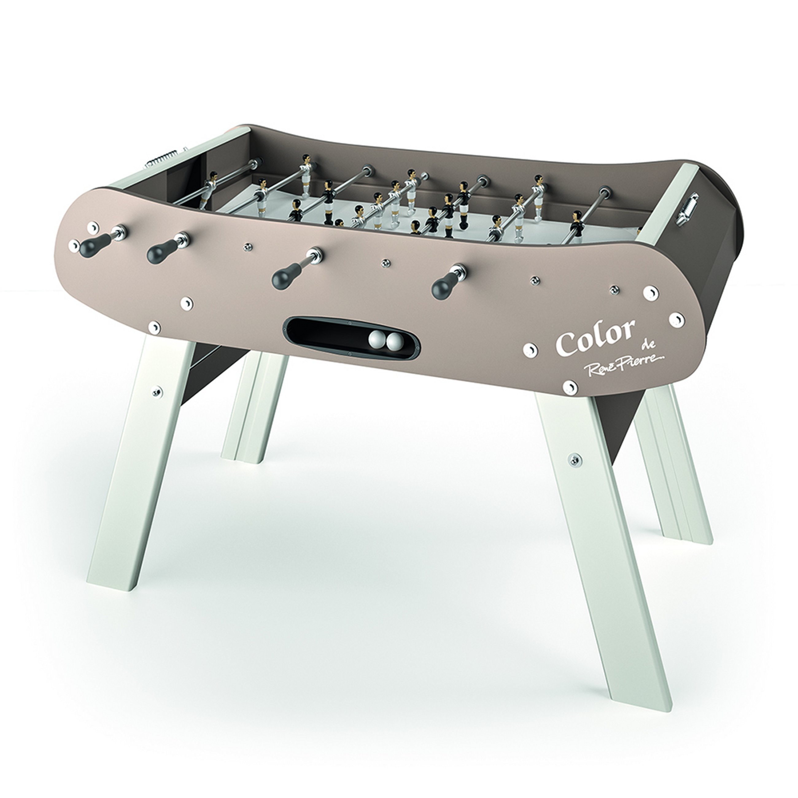 Baby-foot compact avec renforts assurant une très grande stabilité. Meuble en panneau mélaminé décor sable. barres télescopiques haute résistance. Joueurs en métal. Puissance et précision de tir grâce au tapis jeu en linoléum blanc. Effets sonores de “gamelles”. Double compteur de points. Poignées professionnelles. Livré avec 2 balles. Fabriqué en France.