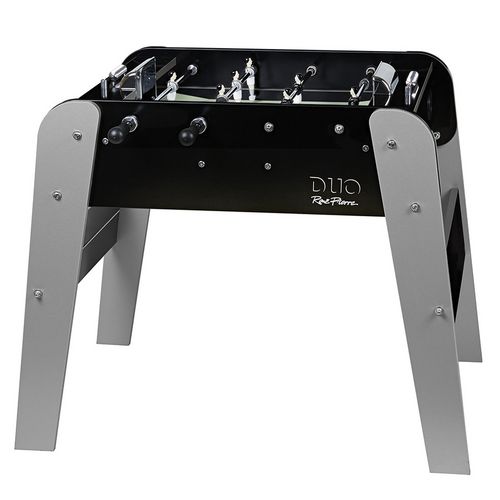 Idéal pour les espaces restreints. Conçu avec les mêmes matériaux et avec le même soin que les babyfoot de style café. Seule différence : un encombrement moindre, des parties en 1 contre 1 et une longueur de 90 cm ! En panneau décor noir brillant. Pieds en panneau renforcé enrobé avec renforts en métal. Joueurs en métal. Joueurs en métal décorés main, vissés sur barres en acier chromé.La surface de jeux du modèle DUO évolue en gerflex vert clair. Poignées ergonomique. Retour latéral des balles. Livré avec 2 balles. Fabriqué en France. GARANTIE. 1 an pour le jeu de barres 3 ans pour le meuble 10 ans pour les joueurs (incassables et indéréglables). DIM EXTERIEUR 115 x 105 x 90. POIDS 40 kg