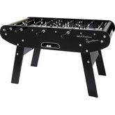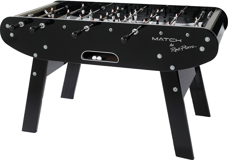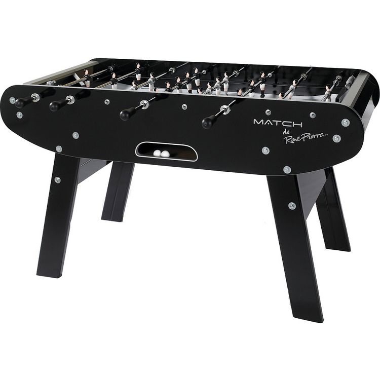Baby Foot type « café ». Meuble compact et stable en panneau décor noir brillant. Pieds en bois massif avec renforts en métal. Joueurs en métal décorés main, vissés sur barres en acier chromé. Puissance et contrôle des tirs, (gamelles possibles).
