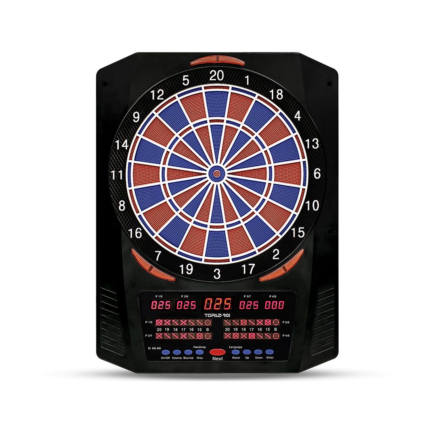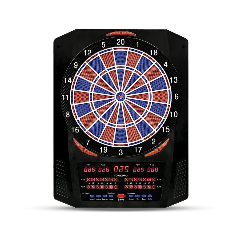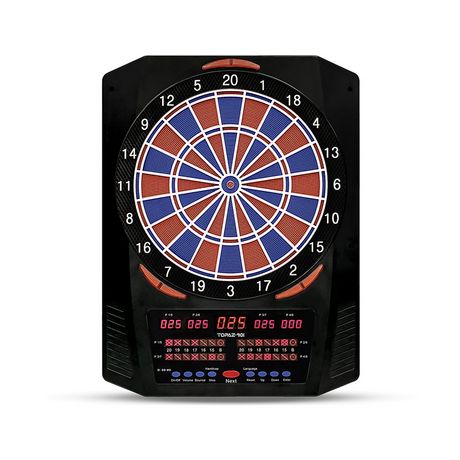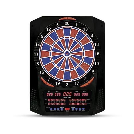 Cible LCD + effets sonores français. Nombre de joueurs : jusqu’à 8. Jeux : 40 (761 variations). Affichage LCD, Effets sonores. Fléchettes incluses. Alimentation sur secteur. Adaptateur inclus. Option handicap, notice en Français, stockage des scores si arrêt de la cible,
