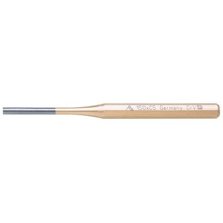 Chasse-goupille en acier chrome vanadium finition peinture epoxy dorée. Corps hexagonal. Tête trempée polie.
