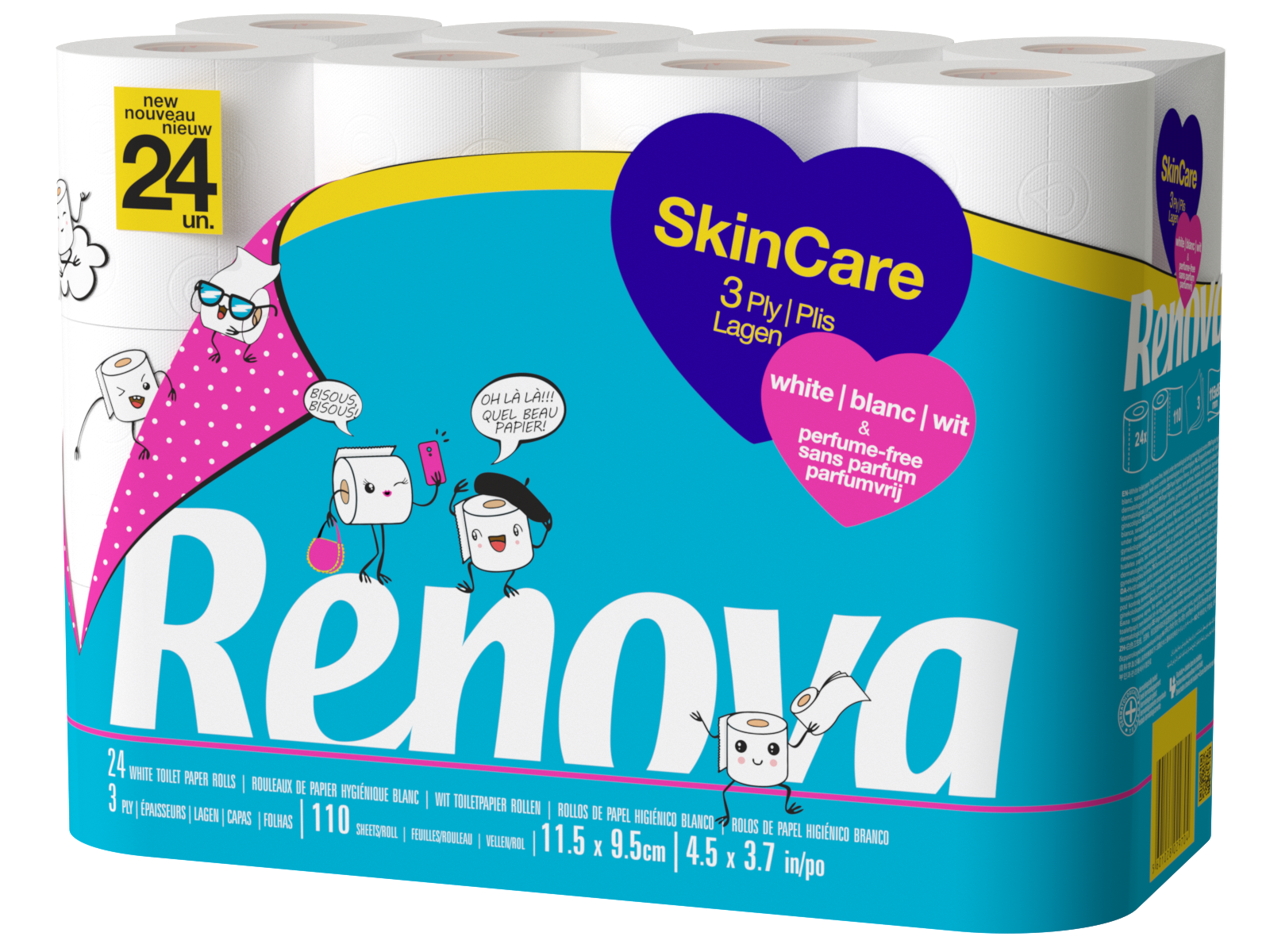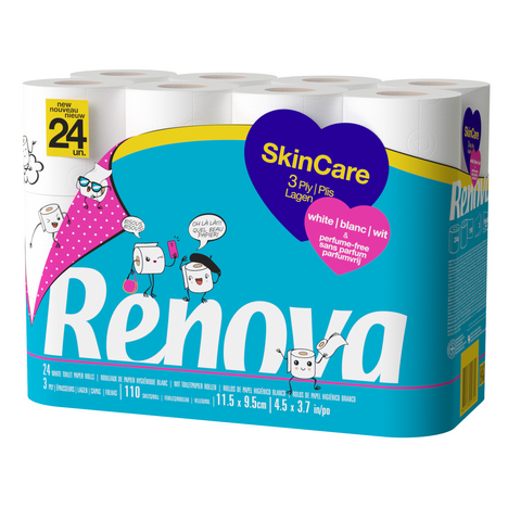Papier higiènique Renova Skin care X 24 Papier hygiénique 3 plis blanc 24 rouleaux