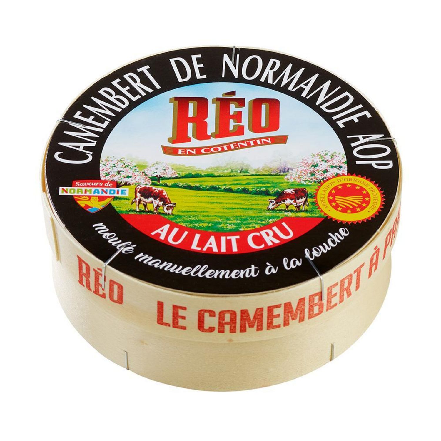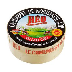 Puissance aromatique, texture généreuse, fleur fine, affiné sur mesure de blanc jusqu'à fait à cœur tels sont les qualificatifs qui symbolisent le camembert REO. Issu d'un lait cru collecté entre mer et bocage, qui lui confère une signature organoleptique à part. Le camembert REO est fabriqué encore aujourd'hui selon le savoir-faire développé par Théodore REAUX il y a plus de 80 ans.