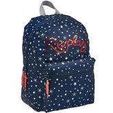 Tu vas pouvoir glisser tes cahiers et ta trousse sans problème dans ce sac à dos bleu à étoiles Replay.