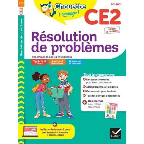 En savoir +Voici ce que tu trouveras dans ton cahier Résolution de problèmes CE2 : les leçons à savoir , 100 problèmes guidés , des conseils pour bien retenir , un test initial et un bilan final , les corrigés dans un livret détachable.