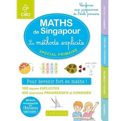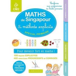 Si les enfants de Singapour sont les plus forts du monde en maths, c'est parce qu'ils ont bénéficié d'un enseignement particulièrement efficace, basé sur une progression qui s'appuie sur le réel et donne du sens à chaque notion : on part du concret (on manipule...), puis on passe à l'imagé (on représente...), et enfin on entre dans l'abstrait. Cette méthode de maths Larousse à destination des élèves du CP au CM2 reprend ces éléments clés de la méthode de Singapour pour progresser rapidement et efficacement en maths. Cet ouvrage réunit : - toutes les notions du programme du CP au CM2 réparties dans 3 domaines : numération et calcul, espace et géométrie, grandeurs et mesures, - des leçons claires et visuelles, illustrées de nombreux exemples, - des exercices progressifs