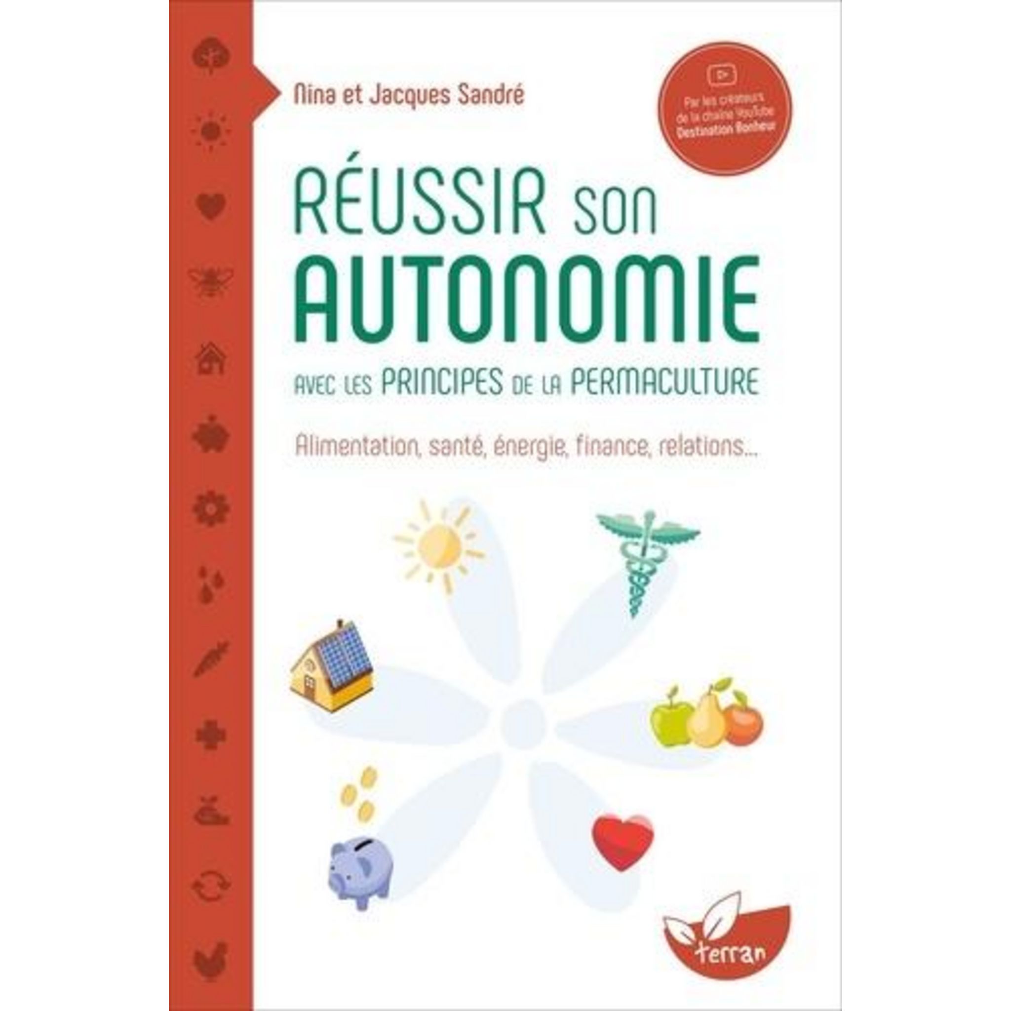 Vous souhaitez développer votre autonomie, mais vous ne savez pas par où commencer ? Le guide pratique, simple et inspirant que Nina et Jacques Sandré mettent à votre disposition vous sera d'une grande aide. Partis d'un terrain nu et dégradé et d'une maison altique le 100% électrique en zone pavillonnaire, ils ont fait de l'autonomie le fil rouge de leur vie en s'appuyant sur l'éthique et les principes de la permaculture. Cette démarche, qui consiste à observer la nature afin de reproduire ses modes de fonctionnement, donne des outils puissants et écologiques, applicables à tous les domaines de la vie et adaptables à toutes les situations, pour une cohérence, une efficacité et une résilience maximales. Ce livre vous invite à passer à l'action. Il vous accompagnera au quotidien vers une autonomie aussi complète que possible dans tous les domaines de la vie : l'alimentation , la santé physique et mentale , l'énergie , la finance. Des partages d'expériences et de nombreux conseils vous feront gagner du temps et de l'énergie pour atteindre votre objectif. Vous pouvez, vous aussi, mettre en place une vie agréable, qui a du sens et où règnent l'abondance, la bienveillance, la diversité et l'harmonie !