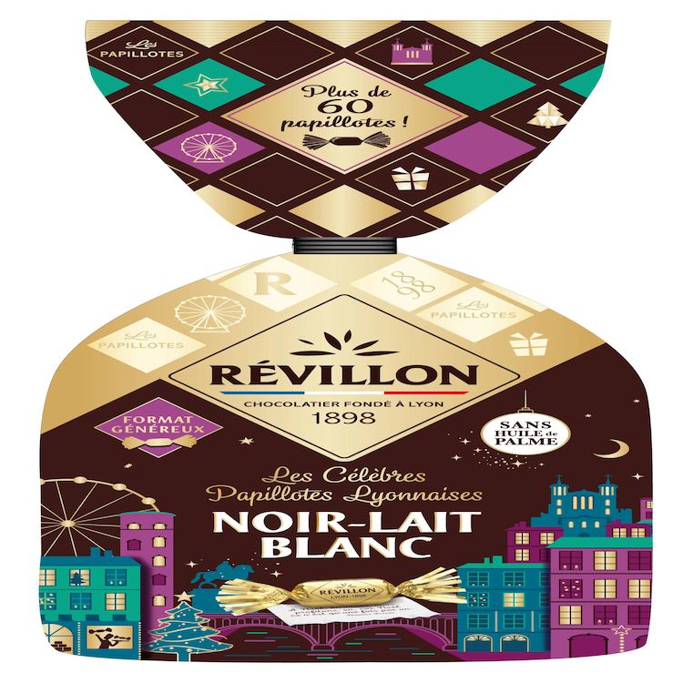 Pour transmettre la magie des fêtes de fin d'année et lancer les festivités, les chocolatiers Révillon ont élaboré ce format de papillotes unique et exceptionnel composé de 7 recettes gourmandes au chocolat noir, lait et blanc pour faire plaisir à toute la famille, du plus grand au plus petit. Nos chocolatiers vous invitent à découvrir ou redécouvrir l'histoire de cette délicieuse spécialité née à Lyon en 1898 en plongeant dans la légende de l'incontournable papillote lyonnaise.