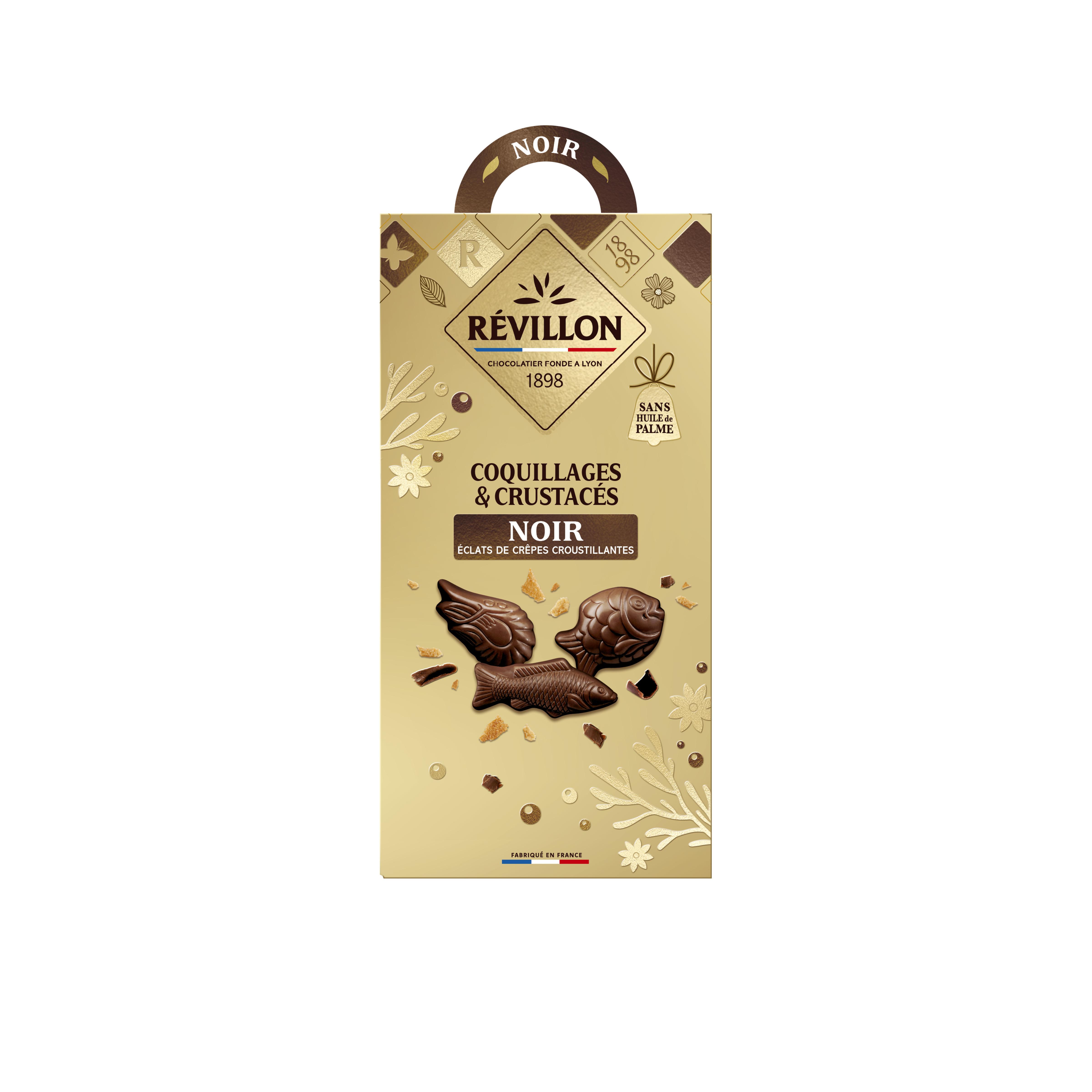 Révillon Chocolatier, réenchante Pâques avec ses petits poissons et crustacés au chocolat noir garnis de crêpes croustillantes. Généreux, gourmand et sans huile de palme, parfaits pour partager des moments magiques en famille.