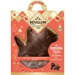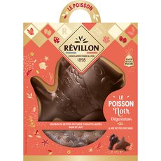Révillon Chocolatier, enchanteur depuis 1898, a créé ce poisson malicieux en chocolat noir, accompagné de sa généreuse garniture de fritures croustillantes au chocolat noir et lait. Généreux, gourmand et sans huile de palme, il est idéal à offrir et à partager en famille à la fin du repas de Pâques.