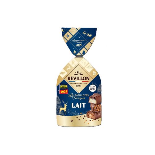 Les chocolatiers Révillon vous invitent à plonger dans leur monde féérique de Noël. Partagez une expérience gourmande en famille grâce à ces délicieuses papillotes au chocolat au lait. Nos chocolatiers ont pris soin de glisser dans chacune d'entre elles un message afin que vous viviez des moments magiques et de plaisirs partagés avec vos proches.