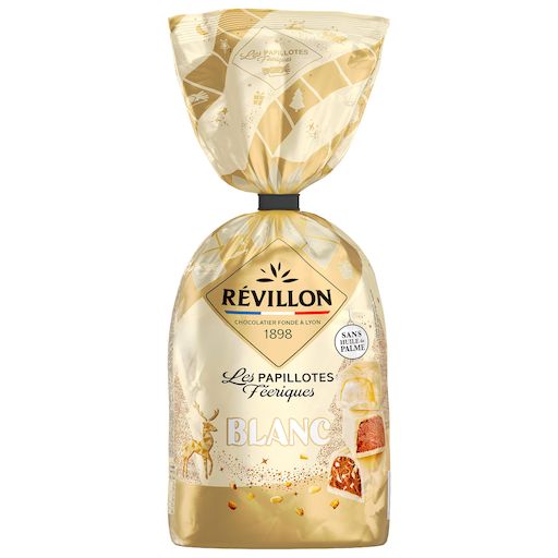 Les chocolatiers Révillon vous invitent à plonger dans leur monde féérique de Noël. Partagez une expérience gourmande en famille grâce à ces délicieuses papillotes au chocolat blanc. Nos chocolatiers ont pris soin de glisser dans chacune d'entre elles un message afin que vous viviez des moments magiques et de plaisirs partagés avec vos proches.