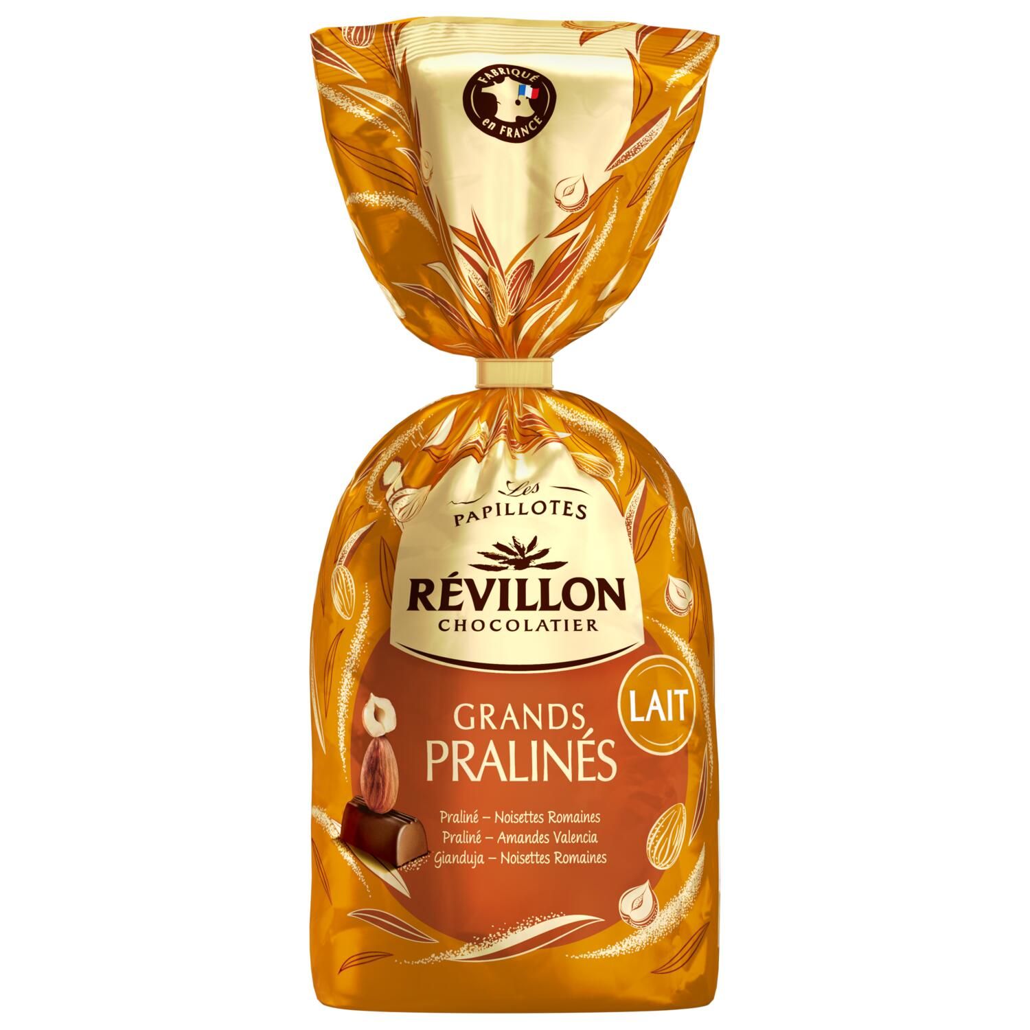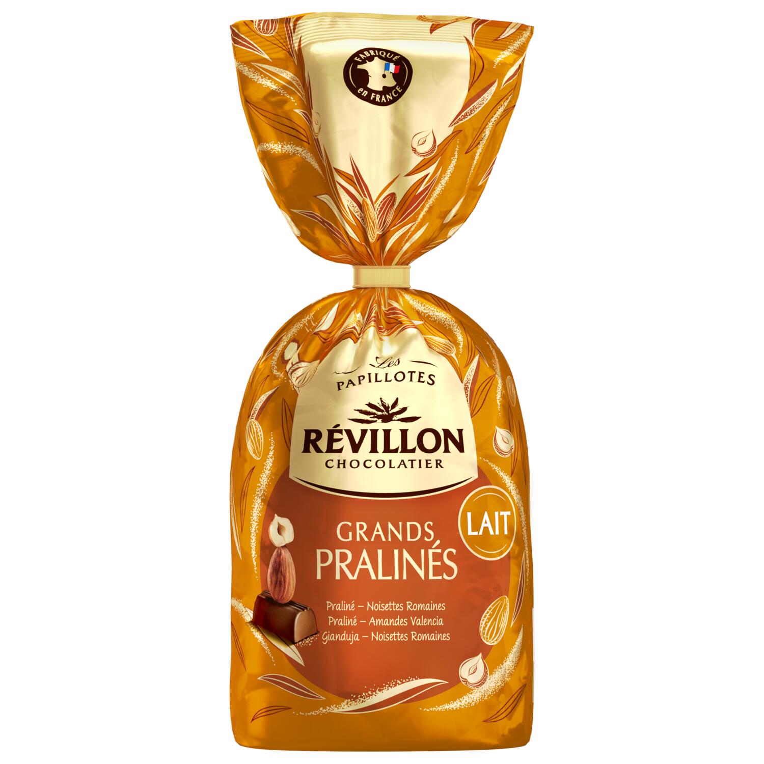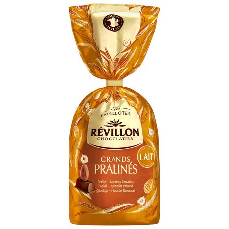 Avec Révillon Chocolatier partez à la découverte des typicités uniques de pralinés aux amandes et noisettes d'origines sélectionnées, enrobés de délicieux chocolat au lait. Assortiment de bonbons de chocolat