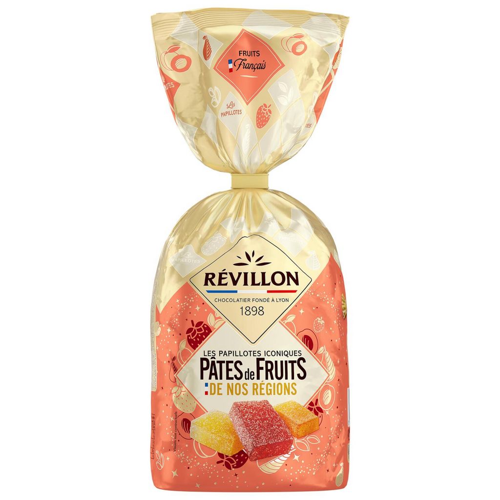 Perpétuez les rituels de Noël en famille grâce à nos recettes iconiques de pâtes de fruits fabriquées à partir de fruits français sélectionnés avec soin : fraises d'Auvergne Rhône-Alpes, abricots d'Occitanie et poires de la région PACA. Chez Révillon, nous mettons tout notre cœur dans la réalisation de nos papillotes pour vous permettre de partager des moments uniques avec ceux que vous aimez.