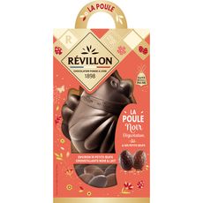 Révillon Chocolatier, enchanteur depuis 1898, a créé cette poule rigolote en chocolat noir accompagnée de ses petits œufs en chocolat au lait et noir délicieusement fourrés. Généreuse, gourmande et sans huile de palme, elle est idéale à offrir et à partager en famille à la fin du repas de Pâques.