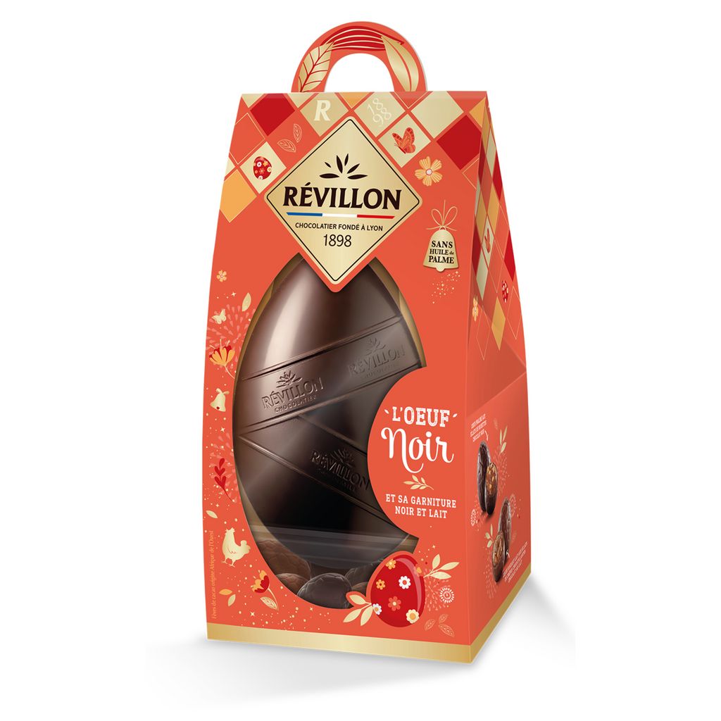 Oeuf chocolat noir et ses petits oeufs noir et lait