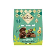 Découvrez les ptits lapins de Revillon ! Révillon a mis en œuvre tout son savoir faire chocolatier pour vous proposer ces petits lapins fourrés d'un coeur au délicieux praliné croustillant. Emballés individuellement, ils sont parfaits pour la chasse aux œufs des petits et des grands enfants!