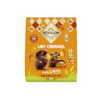 Bonbons de chocolat au lait (55%) fourrés cœur caramel au beurre (40%)