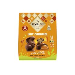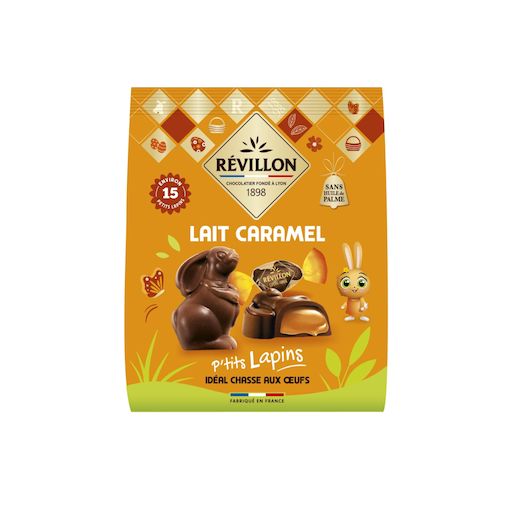 Découvrez les ptits lapins de Revillon ! Révillon a mis en œuvre tout son savoir faire chocolatier pour vous proposer ces petits lapins fourrés d'un coeur au caramel extra fondant. Emballés individuellement, ils sont parfaits pour la chasse aux œufs des petits et des grands enfants!