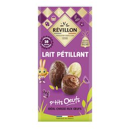 Découvrez les ptits œufs fourrés de Revillon ! Révillon a mis en œuvre tout son savoir faire chocolatier pour vous proposer ces délicieux petits œufs fourrés avec un cœur fondant lait pétillant. Emballés individuellement, ils sont parfaits pour la chasse aux œufs des petits et des grands enfants!