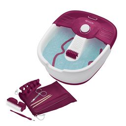 Maintien de la température de l'eau pour un confort total, 2 accessoires détachables : pierre ponce et masseur rouleau. Kit pédiure complet avec 9 accessoires pour les ongles.