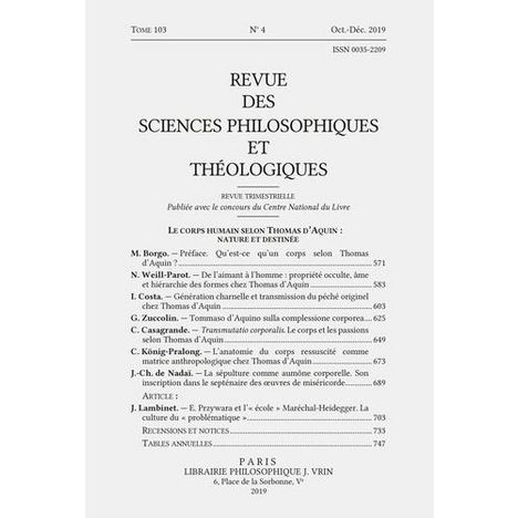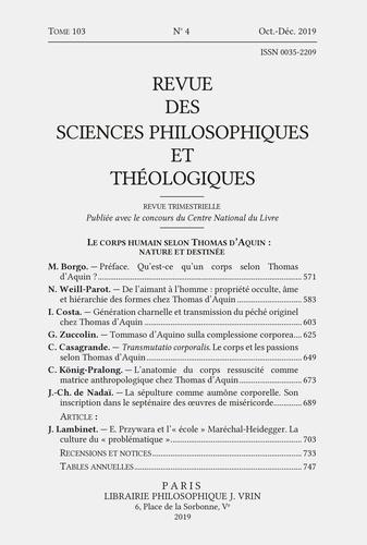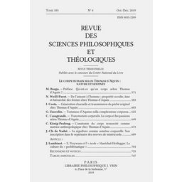 REVUE DES SCIENCES PHILOSOPHIQUES ET THEOLOGIQUES N° 4/2019 , Vrin