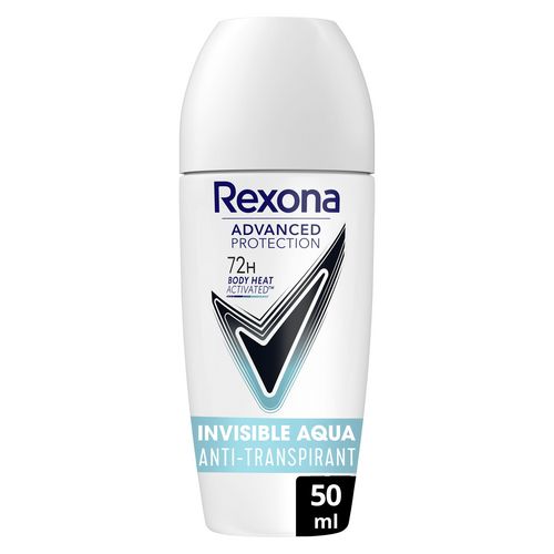 Votre plus bel atout ? Votre allure impeccable ! L'anti-transpirant femme Rexona Invisible Aqua Advanced Protection est anti-traces blanches et jaunes, pour vous permettre de porter les couleurs qui vous plaisent. En plus de vous protéger pendant 72 h contre l'humidité et les odeurs, sa formule sans alcool laisse sur vos aisselles un parfum frais et délicat pour une confiance non-stop. Vous vous sentez fraîche et confiante pour la journée, prête à vous dépasser et à donner le meilleur de vous-même ! De plus, le flacon bille et le bouchon de cet anti-transpirant sont majoritairement recyclables, pensez au tri ! Cette bille anti-transpirante a été fabriquée dans une usine utilisant 100 % d'électricité renouvelable. Jour après jour, les anti-transpirants Rexona vous protègent et apportent fraîcheur et confort à chacun de vos mouvements. L'anti-transpirant femme Rexona Invisible Aqua vous est proposé au format 50 ml. Découvrez-le également au format spray avec Rexona Déodorant Femme Spray Anti-Transpirant 72H Invisible Aqua 200 ml. Rexona est LA marque de l'efficacité. Ses produits ont été conçus pour en faire plus, tout comme vous. Escalader une montagne, prendre le bus, faire une présentation ou vous préparer pour votre premier rendez-vous : quoi qu'il arrive, vous pouvez compter sur l'efficacité Rexona. Nous nous appuyons sur notre longue expérience pour vous proposer des technologies anti-transpirantes exclusives, comme Body Heat Activated. Les molécules anti-transpirantes de la technologie brevetée Rexona s'organisent en un maillage serré pour réguler le flux de transpiration de façon ultra-efficace et vous offrent une haute performance durable. Rexona ne vous laissera jamais tomber. Technologie anti-transpirante brevetée et activée par la chaleur du corps pour 72 h de protection anti-transpirante. 72 h d'efficacité anti-humidité et anti-odeur non-stop. 0% alcool.