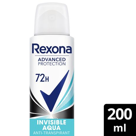 Le déodorant spray anti-transpirant Rexona Advanced Protection Invisible Aqua contient une formule 0 % alcool* testée dermatologiquement qui offre 72 h de protection contre la transpiration et les odeurs, tout en protégeant contre les traces blanches sur vos vêtements noirs et contre les traces jaunes sur vos vêtements blancs, afin que vous soyez toujours à l'aise. Ce déodorant anti-transpirant emploie une technologie brevetée activée par la chaleur du corps, pour une confiance à toute épreuve. Il dégage un parfum aqua et de coton. Que vous soyez en train d'encourager votre équipe préférée, de vous dépenser ou sur le point de rencontrer des amis, ce déodorant anti-transpirant en spray vous soutiendra en toutes circonstances. Lorsque vous travaillez dur, Rexona en fait tout autant. Mode d'emploi : Vaporiser à 15 cm des aisselles. Ne pas appliquer sur la peau endommagée. Stopper l'utilisation en cas de démangeaison ou d'irritation. Éviter d'inhaler intentionnellement. Procéder par de brèves pressions sans pulvérisation prolongée. Utiliser seulement dans des zones bien ventilées. Ne pas vaporiser sur les yeux, ni sur les parties intimes. Utiliser exclusivement selon l'usage préconisé. Ne recycler qu'entièrement vide. Les produits Rexona se déclinent également en une variété de parfums frais. Les déodorants anti-transpirants sont aussi disponibles en spray compressé, en stick ou au format à bille. Parfait en toute situation. Notre mission est de donner à chacun l'inspiration de dépasser ses limites en toute confiance. En plus d'augmenter notre utilisation de matériaux recyclables, nous faisons en sorte de faciliter le recyclage des emballages de nos déodorants en spray, en stick ou à bille en les rendant majoritairement recyclables. Agissons ensemble pour un futur plus durable. Rexona ne vous laissera pas tomber. *Alcool éthylique