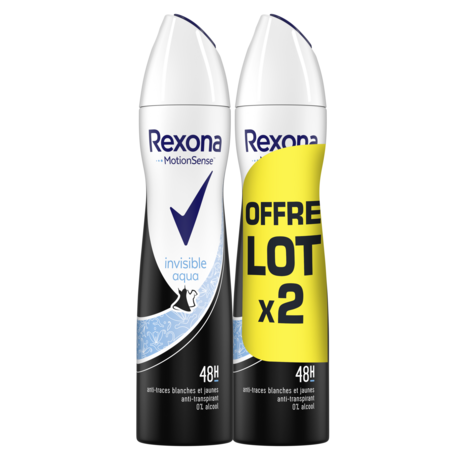 Déodorant Femme Spray Anti Transpirant Si vous préférez aller au bureau à pied et profiter de vos soirées, trouver une tenue adaptée peut être problématique. Heureusement, trouver le bon anti-transpirant l’est beaucoup moins avec le déodorant pour femme Rexona Invisible Aqua. Votre plus bel atout ? Votre allure impeccable ! Certains déodorants réagissent à la transpiration et aux huiles naturelles du corps en laissant des taches blanches sur les vêtements noirs, ou jaunes sur les vêtements blancs. Cette formule est différente. Elle évite les taches pour vous permettre de porter toutes les couleurs qui vous plaisent. Nos produits ont été conçus pour en faire plus, tout comme vous. Notre mission est d’en savoir toujours plus sur la transpiration, et ce que nous apprenons nous permet d’innover. Notre technologie Motionsense™ a été inspirée par vos mouvements ; il a été scientifiquement prouvé que l’anti-transpirant Maximum Protection aide à contrôler la transpiration excessive lorsque vous en avez le plus besoin. Quant à notre formule unique anti-traces blanches, elle protège vos vêtements des taches. Escalader une montagne, prendre le bus, faire une présentation à votre patron ou vous préparer pour votre premier rendez-vous : quoi qu’il arrive, vous pouvez compter sur le meilleur déodorant anti-transpirant. Nous nous appuyons sur notre longue expérience pour vous proposer des technologies anti-transpirantes révolutionnaires, comme Motionsense™. Cette technologie unique réagit aux mouvements tout au long de la journée. Dès que vous bougez, le frottement des aisselles provoque l’éclatement de ses capsules, libérant ainsi protection et parfum quand vous en avez le plus besoin. Rexona ne vous laissera pas tomber.