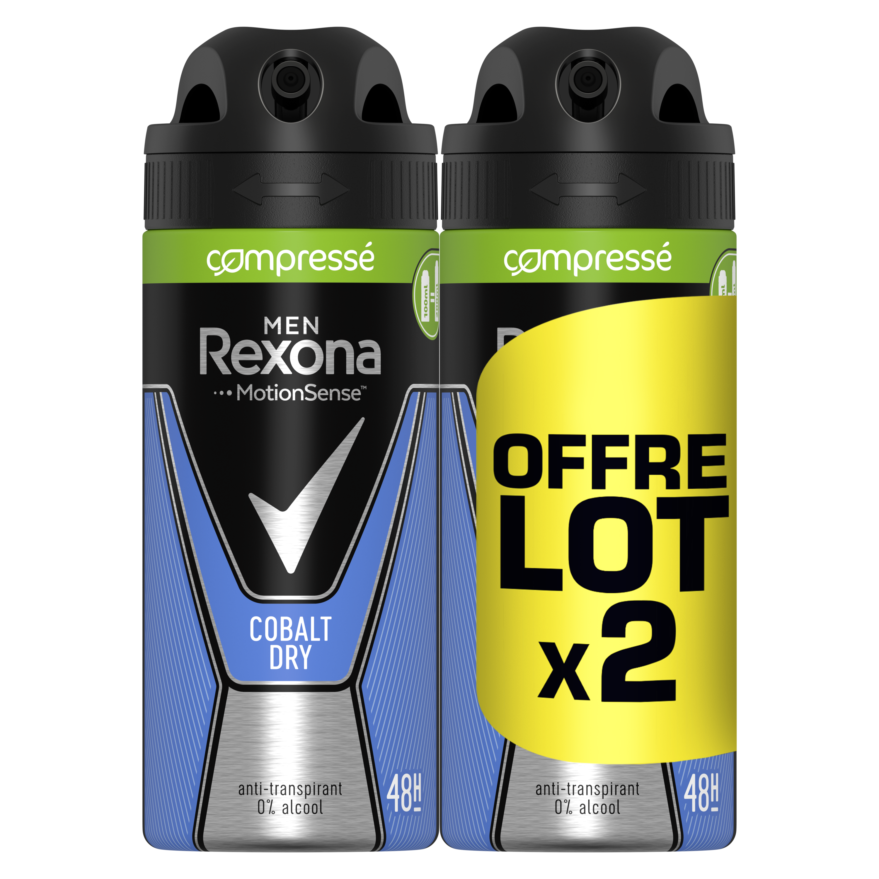 Déodorant Homme Spray Anti Transpirant Rexona Cobalt Dry vous assure une efficacité anti-transpirante 48h, alliée à des senteurs subtiles de menthe et de musc pour vous aider à rester fraîs à chacun de vos mouvements. Grâce à la technologie Motionsense™ plus vous bougez, plus vous êtes protégé ! Le tout dans un format Compressé qui pourra vous suivre à chacun de vos mouvements. La marque Rexona est créée en 1908 par Mme Alice Sheffer, femme de SF Sheffer, fondateur de l’entreprise « Sheldon Drug ». Médecin talentueux, son objectif est de proposer un nouveau type de produits de soins personnels, fabriqués avec des ingrédients efficaces et libérant une odeur agréable. Lorsque Rexona rejoint les rayons en 1908, la marque devient rapidement le produit phare de l’entreprise. Depuis, Rexona continue à se développer, apportant aux gens du monde entier une protection supérieure contre la transpiration. Nos produits ont été conçus pour en faire plus, tout comme vous. Notre mission est d’en savoir toujours plus sur la transpiration,et ce que nous apprenons nous permet d’innover. Nos produits ont été conçus pour en faire plus, tout comme vous. Notre mission est d’en savoir toujours plus sur la transpiration, et ce que nous apprenons nous permet d’innover. Notre technologie Motionsense™ a été inspirée par vos mouvements ; il a été scientifiquement prouvé que l’anti-transpirant Maximum Protection aide à contrôler la transpiration excessive lorsque vous en avez le plus besoin. Quant à notre formule unique anti-traces blanches, elle protège vos vêtements des taches. Escalader une montagne, prendre le bus, faire une présentation à votre patron ou vous préparer pour votre premier rendez-vous : quoi qu’il arrive, vous pouvez compter sur le meilleur déodorant anti-transpirant. Rexona ne vous laissera pas tomber.
